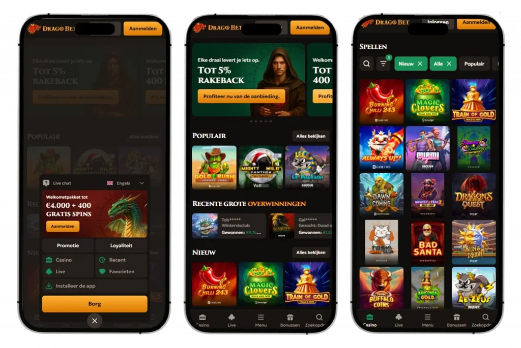 Download de Dragobet mobiele app gratis voor iOS of Android en geniet van alle casinospellen onderweg. De app biedt dezelfde functies als de desktopversie, inclusief live casino, stortingen en bonussen.